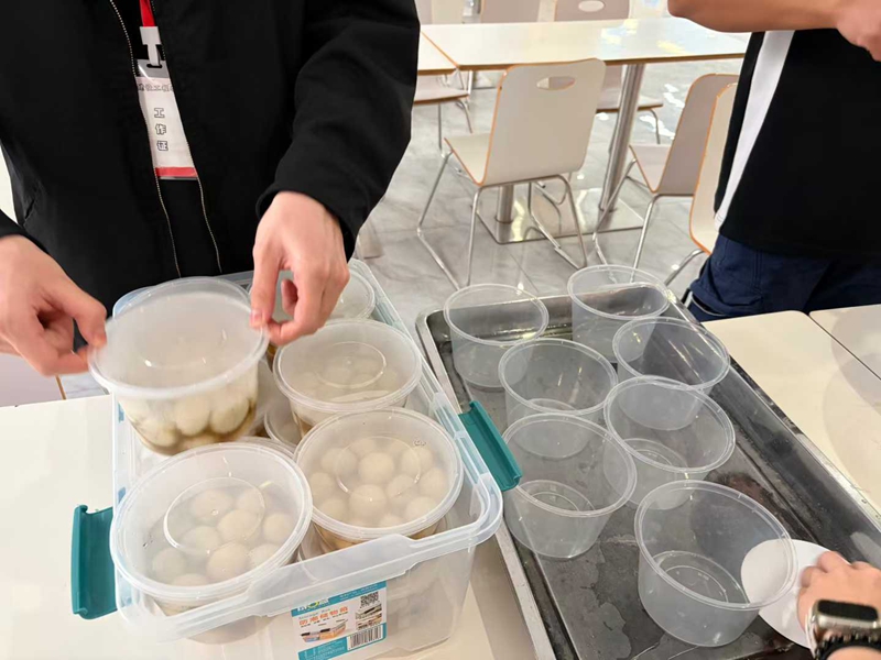 为保障活动顺利开展,学院提前策划组织活动筹备工作小组。工作人员提前开展采买汤圆的行动,明确职责分工,为活动有序推进做好准备。后勤管理部门严格落实食品安全,以高标准开展食材筹备工作。根据同学们的饮食偏好,精心准备了经典黑芝麻、清甜花生、香甜紫薯等多种馅料的汤圆,满足不同同学的口味选择。经过团委工作人员分工协作、默契配合,烧煮汤圆、分装盛碗一系列操作高效完成,热气腾腾、软糯香甜的汤圆被盛出,等候派送。