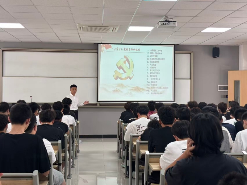 随后,宣讲员龙均同学结合自身的成长经历,生动讲述了如何从理论学习与社会实践两方面双管齐下,实现思想上的深刻觉悟与行动上的积极进取。他通过真实的事例,分享了如何在专业学习中刻苦钻研、在集体事务中勇担责任、在日常生活中服务同学,从而具体地展现一名学生干部的先锋模范作用。他鼓励新生们尽早树立正确的政治追求,主动接受组织培养和考验,争取早日站在党旗下加入党组织。