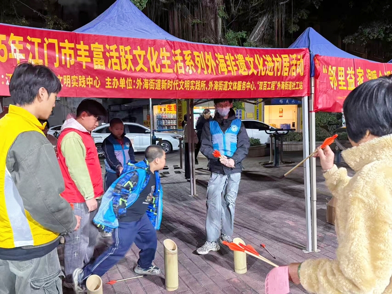 活动正式拉开帷幕,居民们纷纷涌向各个游戏区。套圈摊位前,大家凝神屏息、专注瞄准,每一次投掷都伴随着阵阵欢呼与善意的叹惋;投壶区内,居民们在同伴的提示下调整角度、稳慎出手,每当箭矢应声入壶,周围便响起热烈的掌声;吹气球游戏则考验着参与者的肺活量,孩子们鼓起小脸认真吹气的模样,引得一旁家长纷纷举起手机,记录下这份专注与童趣。