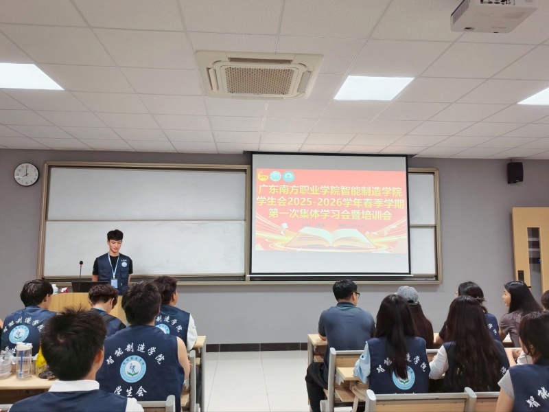 为深入学习贯彻党的二十届四中全会精神与“十五五”规划纲要,全面提升学生会干部的政治素养、履职能力与服务水平,引导青年骨干紧跟时代步伐、勇担强国使命,智能制造学院学生会于2026年3月26日在广东南方职业学院南校区2307教室举行春季培训会,全体学生会成员参与本次学习。本次培训紧扣党的二十届四中全会精神和“十五五”规划纲要与学生会干部工作实际,设置思想引领、岗位履职、规范建设、能力提升、青春建功五大模块,系统推动国家发展蓝图与我院团学实践深度融合。