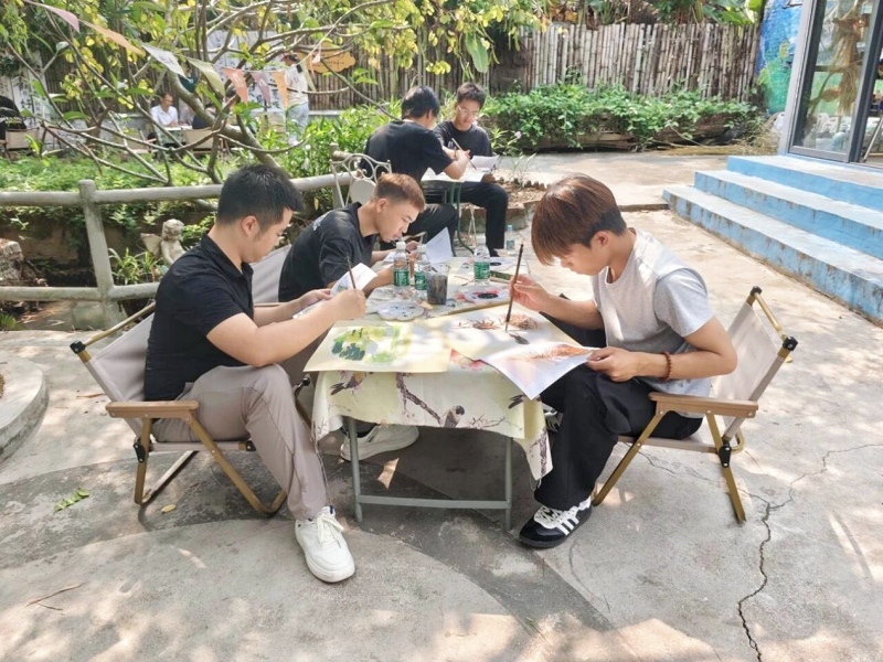 听完导师精湛的技法指导课后,同学们纷纷拿起画笔,铺展画纸,沉浸于艺术创作与自然美景之中。大家以画笔为媒、以丹青为语,细心勾勒乡村美景,用心晕染色彩层次,将疍家水乡的独特风情、乡村振兴带来的崭新变化,一笔一画定格在画纸之上。创作过程中,学子们相互交流、彼此借鉴,在感受传统书画艺术魅力的同时,近距离领略乡村振兴的丰硕成果,体会乡土文化的深厚底蕴,现场氛围热烈而雅致。