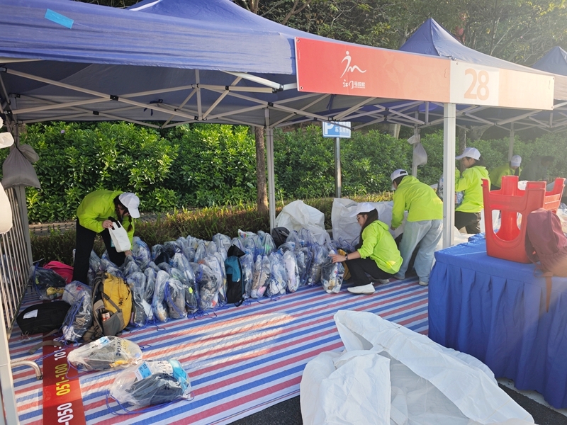 赛事期间,财经学院志愿者在存取包服务区域各司其职、默契配合,用耐心与细心守护每一位跑者的随身物品。在存包环节,志愿者们快速核对选手信息,规范粘贴标识、分类存放行李,详细告知取包流程与注意事项,用高效操作减少选手等候时间;比赛进行中,志愿者们定时巡查行李存放区域,做好物资看护与环境维护,确保行李安全无虞;到了取包高峰时段,志愿者们根据标识快速定位行李位置,精准高效地为完赛选手办理取件手续,同时主动协助整理物品,用贴心服务缓解选手赛后疲惫。