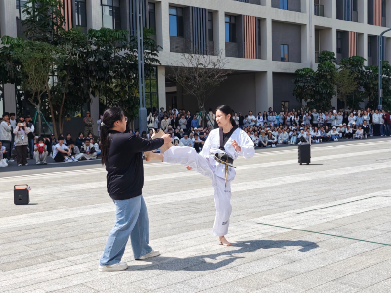 竞赛结束,文艺表演精彩登场。25商英2班李舒婷的舞蹈串烧动感十足,用灵动舞步绽放青春活力;25会计精英1班罗榕娴的跆拳道表演刚劲有力,尽显少年意气与拼搏气魄;黄琳媚同学一曲《万疆》深情悠扬,歌声里满是对祖国山河的热爱与礼赞。学子们以青春风采抒发家国情怀,让红色情怀在现场不断升腾。