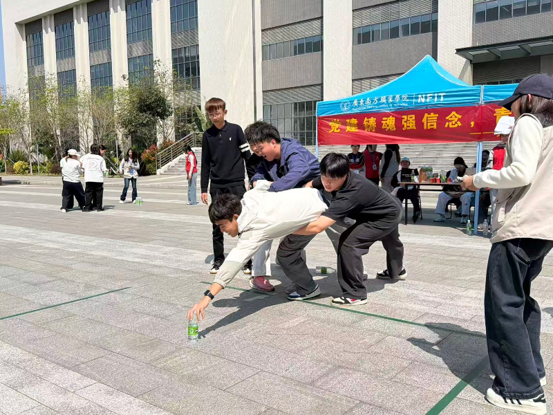 为厚植青年学子爱党爱国情怀,锤炼团队协作精神,引导青年践行时代担当,我校财经学院于2026年3月15日在南校区图书馆前举办“党建铸魂强信念,青春践悟勇担当”主题党建活动。学院组织全体2025级新生以连队为单位参与,通过趣味实践拉近距离、凝聚力量,在欢声笑语中筑牢理想信念根基。