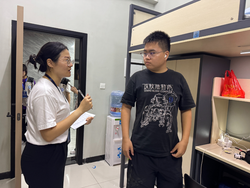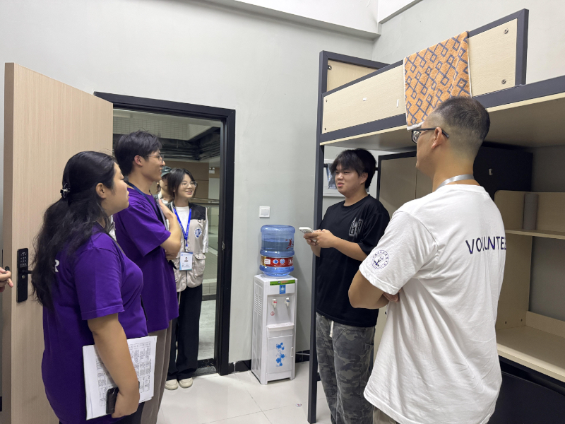 走访酬勤书院时,王幸雯重点关注新生身体健康状况及舍友间的相处情况,特别为广东省外新生提供生活与饮食适应建议,强调宿舍成员需加强沟通、团结互助,共同营造和谐的宿舍氛围。