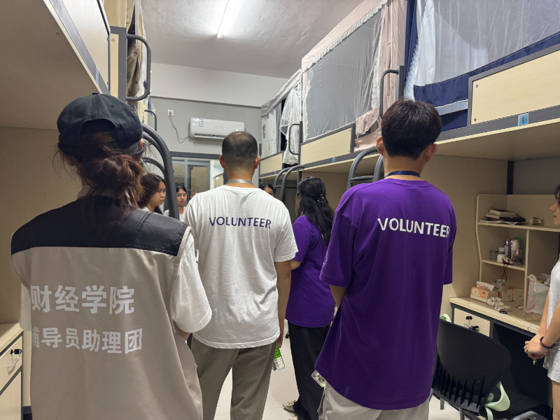 金秋九月迎新生,暖心走访护成长。9月13日晚,正值2025级新生完成报到、正式入住书院的关键节点,财经学院书记王幸雯、副院长汪国利、学工办主任王东旭及各新生辅导员带领辅导员助理团全体成员深入各新生书院宿舍,以“面对面”交流的形式开展宿舍走访慰问活动,助力新生快速融入大学住宿生活和校园环境,让初来乍到的学子切实感受到来自学院的关怀与温暖。
