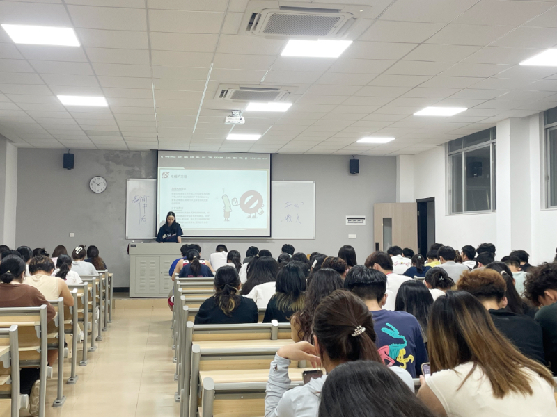 主讲人着重强调被动吸烟的危害:二手烟所含有害成分与一手烟基本一致,部分成分浓度甚至更高。主讲人提醒学生,在校园内吸烟会让师生被动受害,既损害他人健康,也违背公共道德。