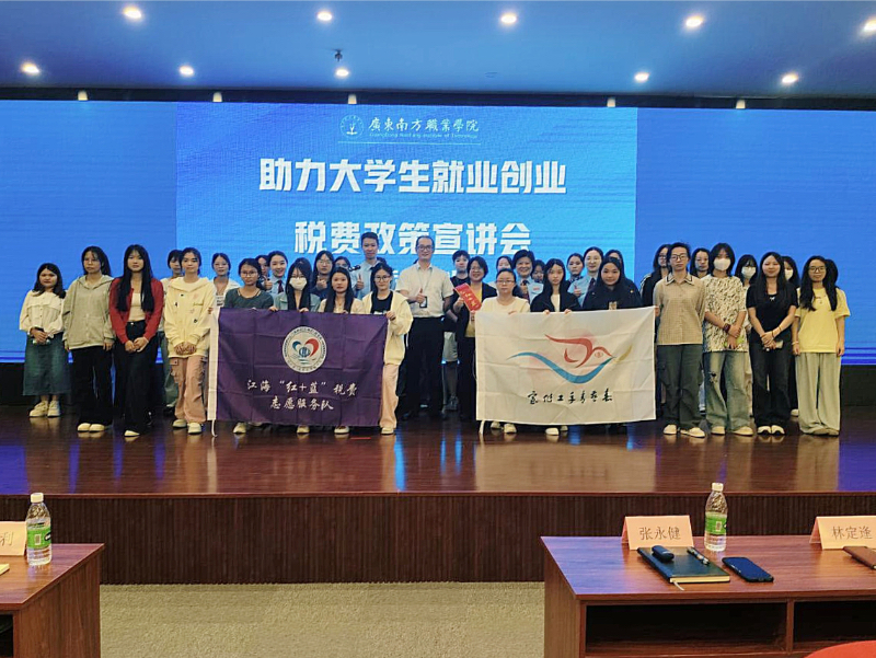 活动伊始,财经学院副院长汪国利代表学校致辞,对莅临现场的江门市税务局纳税服务中心的各位税务专业人员及全体同学致以诚挚欢迎。汪院长表示,毕业、就业与创业是同学们人生的关键转折点,而税费政策与个人未来发展紧密相连。他强调,本次活动是学校精心搭建的学习平台,旨在帮助同学们深入了解相关政策,为未来的职业发展与创业之路奠定坚实基础。