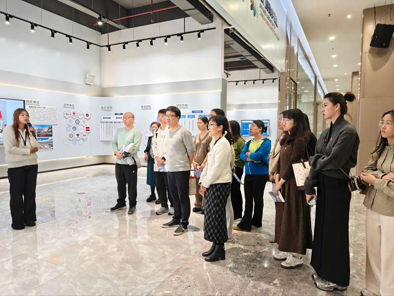 抵达江门双碳实验室后,在实验室专业人员的引导下,党员同志们首先参观了综合展示区。通过详实的文字资料、生动的多媒体演示和实物展品,大家系统了解了实验室的组建背景、组织架构、科研团队建设及核心技术研发方向,及其在碳捕集利用与封存、新能源开发、绿色材料等领域的突破性成果。随后,大家走进户外实验田,近距离观察低碳农业技术的应用实践,并就节水灌溉、生态种植、碳汇计量等技术的原理与推广成效进行交流,切身感受科技创新对农业绿色转型的推动。活动中,双方还围绕“双碳人才培养路径”“产学研融合模式创新”“党建引领科研攻关”等议题展开了深入探讨。