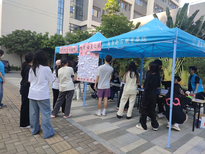 5月13日,南校区一饭门口的“信息赋能,快乐同行,共赴心灵之旅”摆摊活动人气高涨。开盲盒、撕“毒标签”、表情包涂鸦等互动环节,吸引学生释放压力、关注自我。活动准备的200余份小礼品全部派送完毕,切实增强学生参与感与获得感。
