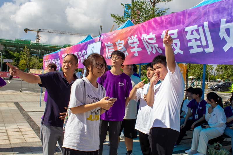 (信息学院师生热情迎接新生们的到来)