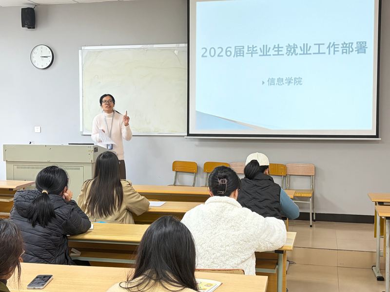 为系统总结2025届毕业生就业工作,统筹推进部署2026届就业任务,信息学院于2026年1月5日召开专题工作推进会。学院领导、2025届及2026届全体毕业班辅导员出席会议。