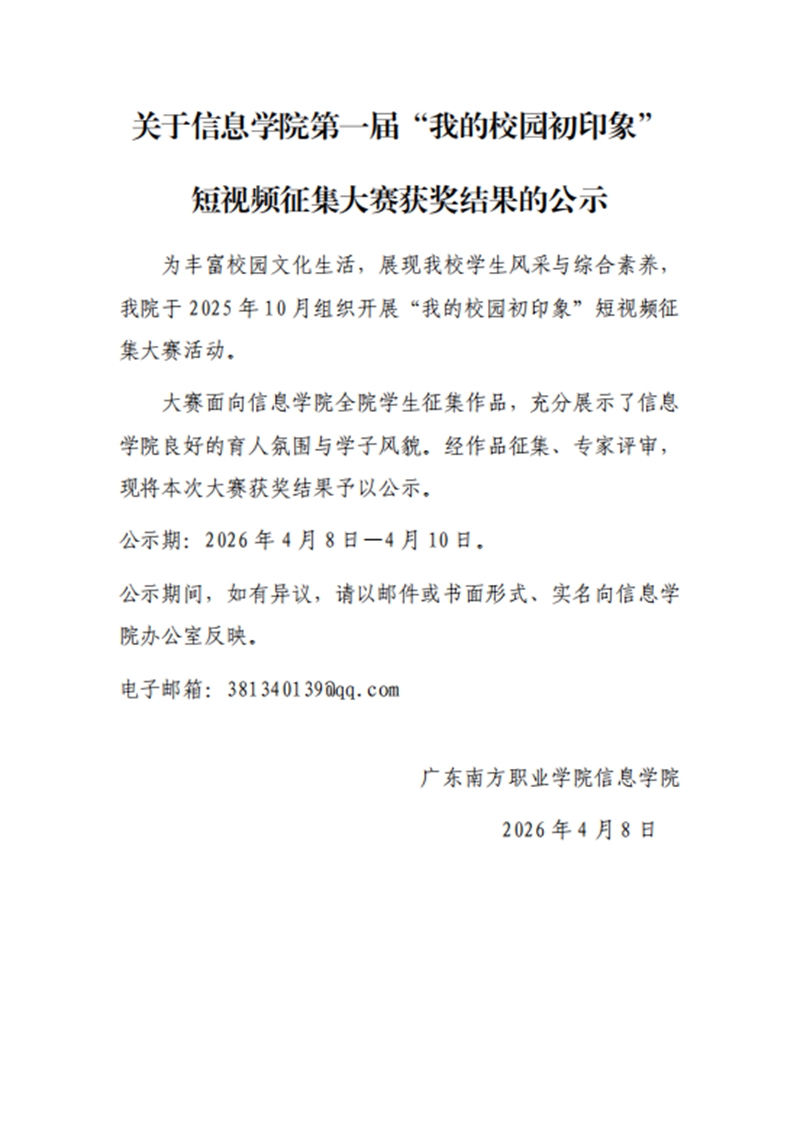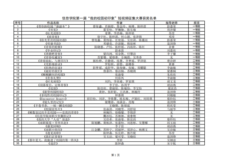 附件:信息学院第一届“我的校园初印象”短视频征集大赛获奖名单