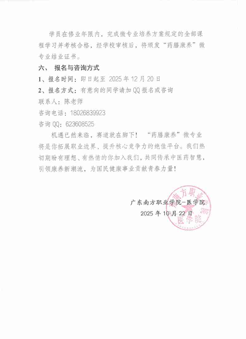 附件:关于广东南方职业学院"药膳康养"微专业招生通知
