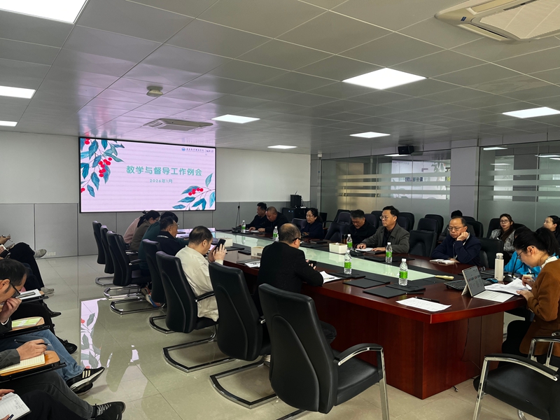 期末将至,为系统梳理年度教学工作成效,精准部署寒假及新学期重点任务,切实筑牢教学质量根基,我校于2026年1月5日召开本年度最后一次教学与督导工作例会。各学院、各相关部门教学负责人及教学督导人员参会,常务副校长陈德清、副校长吴南云出席会议并讲话。