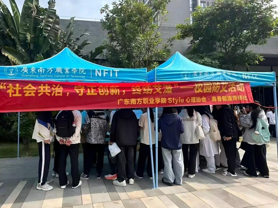 为进一步提升青年学生艾滋病防治意识,纠正认知误区,传递包容友善的校园氛围,筑牢青年身心健康防线,在2025年12月1日第38个世界艾滋病日当天,我校Style心理协会・青春健康同伴社于南校区开展“社会共治,守正创新,终结艾滋”校园防艾主题摆摊活动。全校各院系学生积极响应、踊跃参与,活动现场氛围热烈有序。