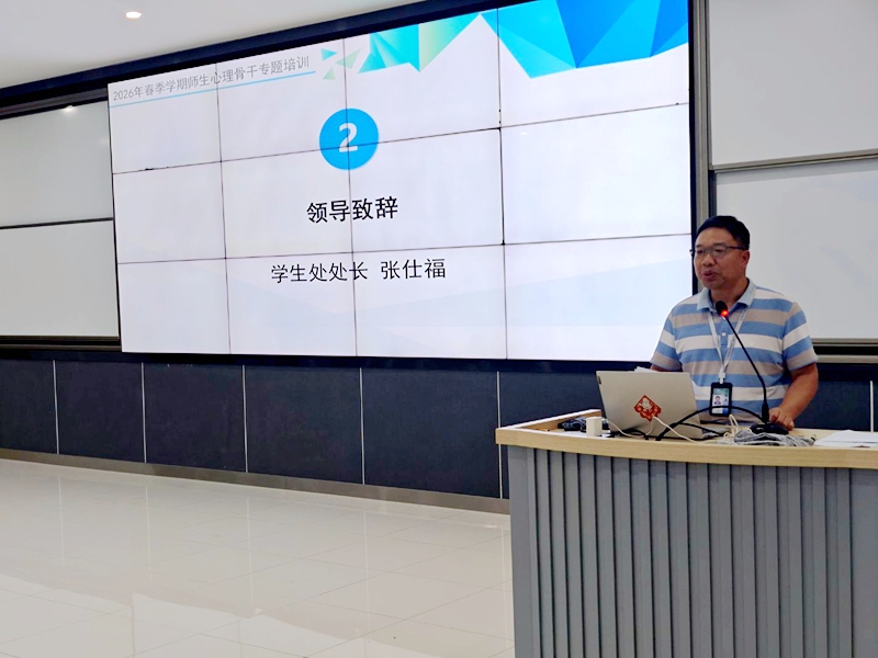 为深入贯彻《教育强国建设规划纲要(2024—2035年)》关于普及心理健康教育、建立全国学生心理健康监测预警系统的部署要求,进一步完善我校心理危机预防的“四级”预警防控体系,建立健全心理危机预防和快速反应机制,3月25日下午,我校在南校区教学楼3205室隆重举办2026年春季学期师生心理骨干专题培训。