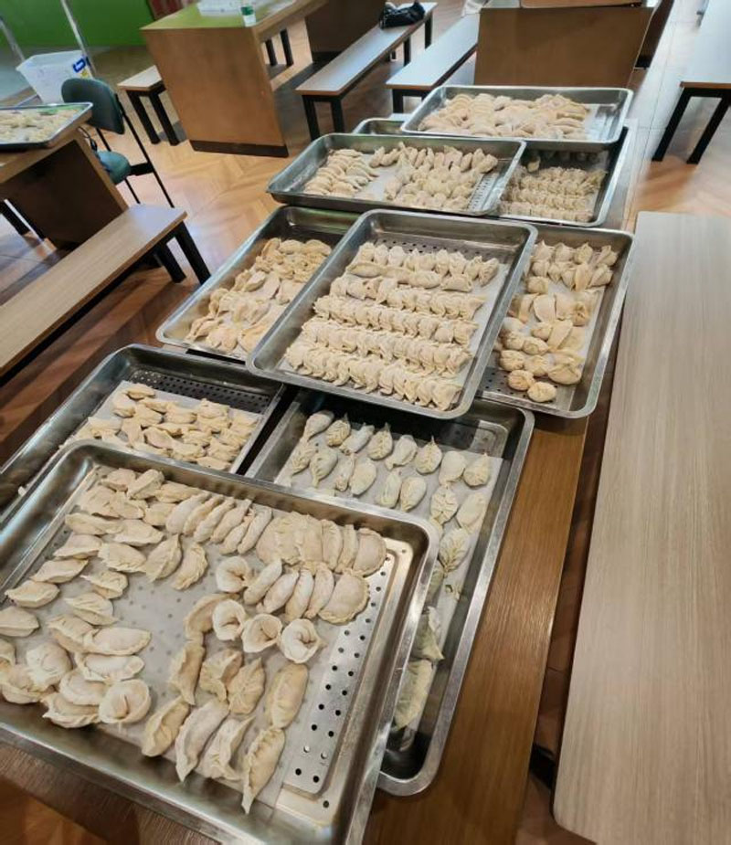 巧手包饺,笑语融融。活动在欢声笑语中拉开序幕。同学们围坐在一起,纷纷展示“包饺子能手”的风采,大家熟练地取皮、填馅、捏合,不一会儿,柳叶饺、月牙饺等各式各样的饺子便摆满了桌面。过程中,同学们互相学习包饺技巧,互助友爱的氛围格外浓厚。