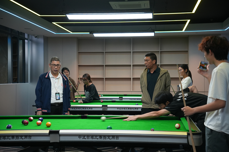 钟兆明、廖万敏在黄永伦的带领下先后走访了笃行书院桌球室、厚德书院党建报告厅、心理健康教育与咨询中心(心康中心)及弘扬书院“校警驿站”。在刚刚建成启用的桌球室内,钟兆明详细询问了开放时间、管理模式及学生使用反馈,他指示,要充分利用好这一休闲娱乐设施,丰富学生的课余文化生活,营造积极健康的校园氛围。
