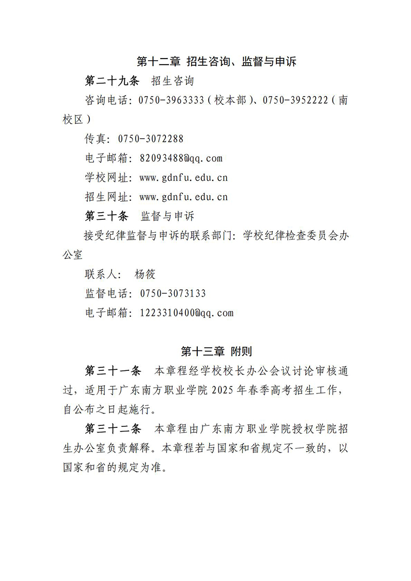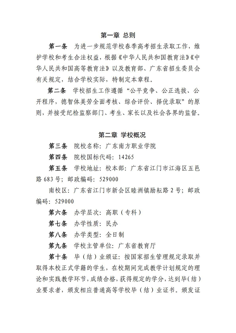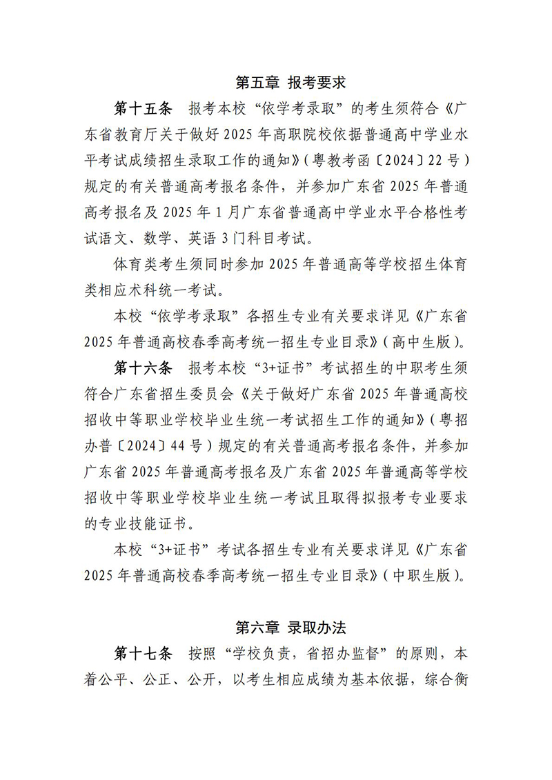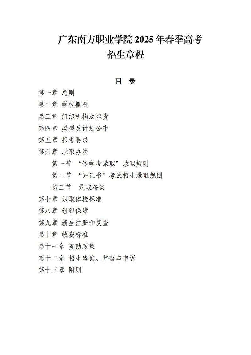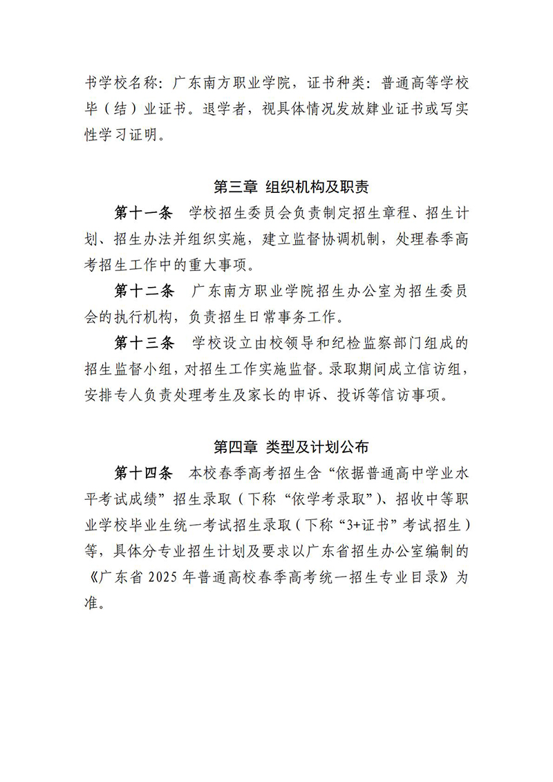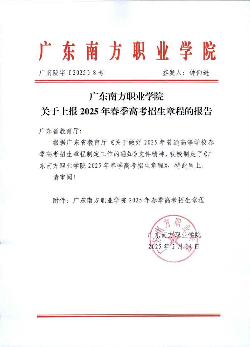 广东南方职业学院2025年春季高考招生章程