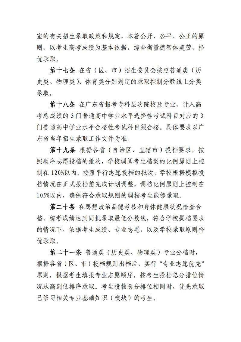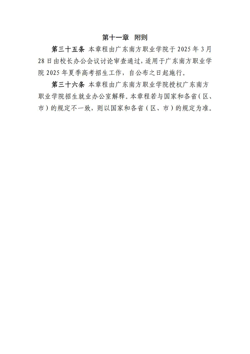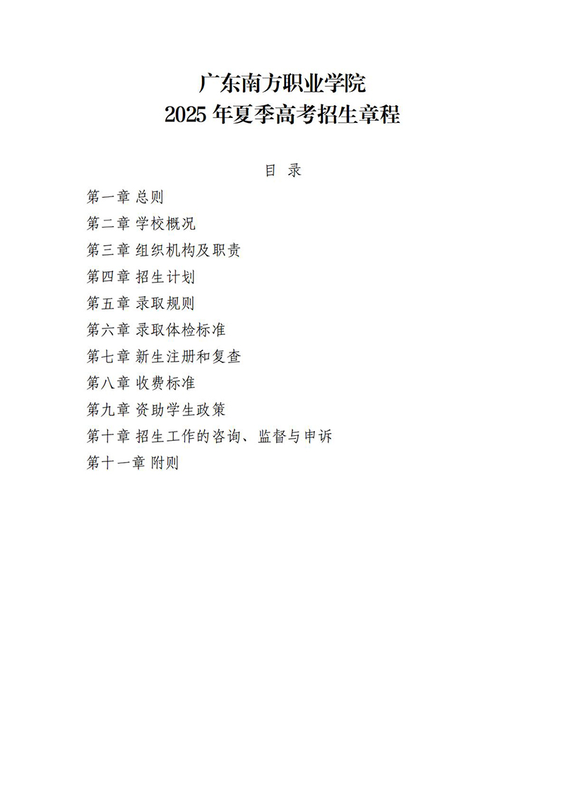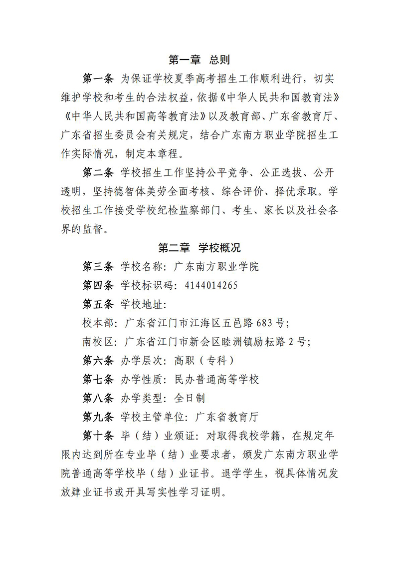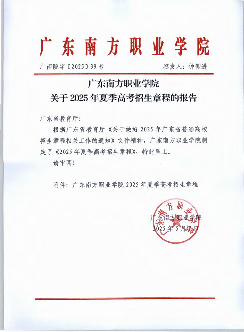 广东南方职业学院2025年夏季高考招生章程