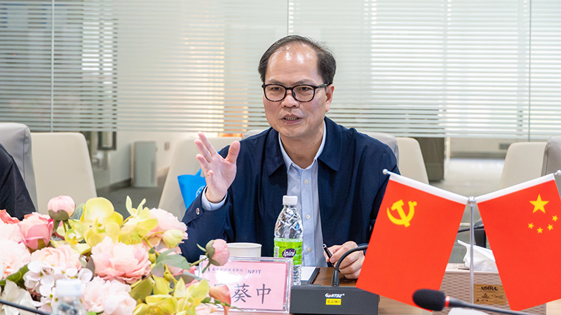 座谈会上,廖葵中对嘉应学院领导的到来表示热烈欢迎。他从办学实力、党建思政、专业建设、产教融合四大维度,系统介绍了我校的发展成果,重点阐述了在党建引领下构建的“1446”党建工作体系与“四维”思政育人格局,以及依托省级大学科技园形成的“校厂一体、园院协同”的产教融合特色。他表示,广东南方职业学院正积极打造行业产教融合共同体,推动“政校企行”协同育人,致力于培养与现代产业需求高度契合的高素质技术技能人才。