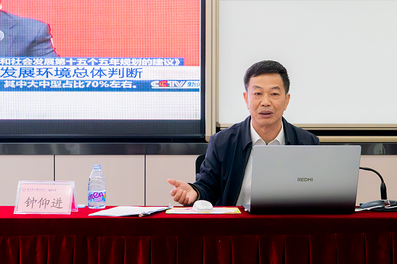 辅导报告紧扣全会精神,立足全局、系统深入。钟仰进从“重大成就”“重大意义”“形势判断”“核心要义”四个维度,对全会精神进行了全面解读和深入阐释。他以全会基本情况为切入点,采用循序渐进、图文并茂的讲解方式,结合视频解读与详实数据,全面回顾了“十四五”时期我国在经济运行、科技创新、改革开放、民主法治、文化建设、民生保障、绿色转型、国家安全、国防军队、“一国两制”、大国外交以及党的建设等领域取得的显著成效;深刻阐明了全会在承前启后、理论创新、实践指引和国际贡献等方面的时代价值;系统剖析了“十五五”时期面临的战略机遇和风险挑战,并重点解读了以“一个引领、六大原则、七方面目标、十二项重要部署、一个保障”为框架的“十五五”行动纲领。他强调,要将学习贯彻全会精神与落实立德树人根本任务紧密结合,切实将学习成果转化为推动学校高质量发展的强大动力和扎实成效。
