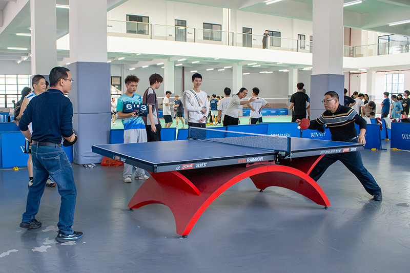 国球乒乓的赛场同样亮点十足,28名乒乓球爱好者齐聚校本部体育馆,参与男单、女双两个项目的角逐。单败淘汰制的紧张赛程中,选手们凝神聚力,发球、接球、扣杀一气呵成,小小的银球在球桌上快速穿梭,每一次精准落点都凝聚着技巧与专注,演绎着国球的独特魅力。