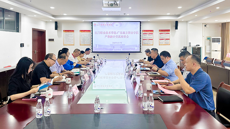 当天上午,交流在江门职业技术学院厚德楼会议室正式开始。在订单班、现代学徒制、现场工程师班等人才培养模式方面,双方深入交流了专业选择、课程体系构建、校企协同教学与工作安排等实践路径,并就教学管理、质量监控、学分置换等制度建设交换了意见。江门职院还将地方非遗文化融入专业教学,形成了可操作的经验,给我方带来启发。