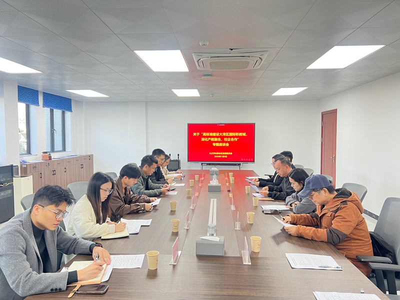 2026年1月9日上午,“高标准建设大湾区国际职教城,深化产教融合、校企合作”专题座谈会在广东润宇传感器股份有限公司召开。九三学社新会区基层委员会相关领导、粤港澳高校代表及行业企业人士齐聚一堂,围绕职教城建设、产教融合协同发展等议题展开深入研讨。广东南方职业学院团委副书记余镇凯、产教融合办公室干事邓晓雯代表学校参会,为大湾区国际职教城建设建言献策。