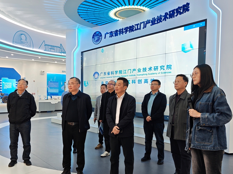 学校一行首先走进广东省科学院江门产业技术研究院科技成果展厅,在工作人员引导下,详细了解研究院在新材料、医疗、农业、高端装备制造等领域的技术研发成果,以及“1+6+N”成果转化生态体系赋能江门产业升级的实践成效,近距离观摩了数字化技术改造传统产业的典型案例,对研究院的科创实力与服务地方发展的成果有了直观认识。