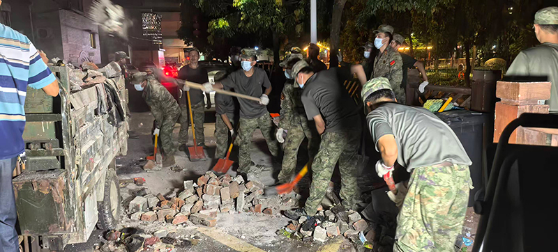 在这场没有硝烟的战斗中,防疫小分队的成员们展现了非凡的毅力和无私的奉献精神。他们连续作战,有时一天工作时长达17小时,他们手递手传递一个个建筑废料、废弃轮胎,汗水顺着脸颊往下淌,浸湿了迷彩服,指尖被勒出红印,但从未有人喊过苦、叫过累。“只要能快点控制住疫情,再苦再累都值!”这是他们共同的心声,也是对“人民至上、生命至上”理念的生动实践。