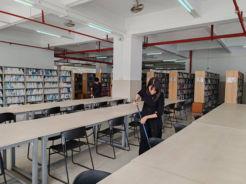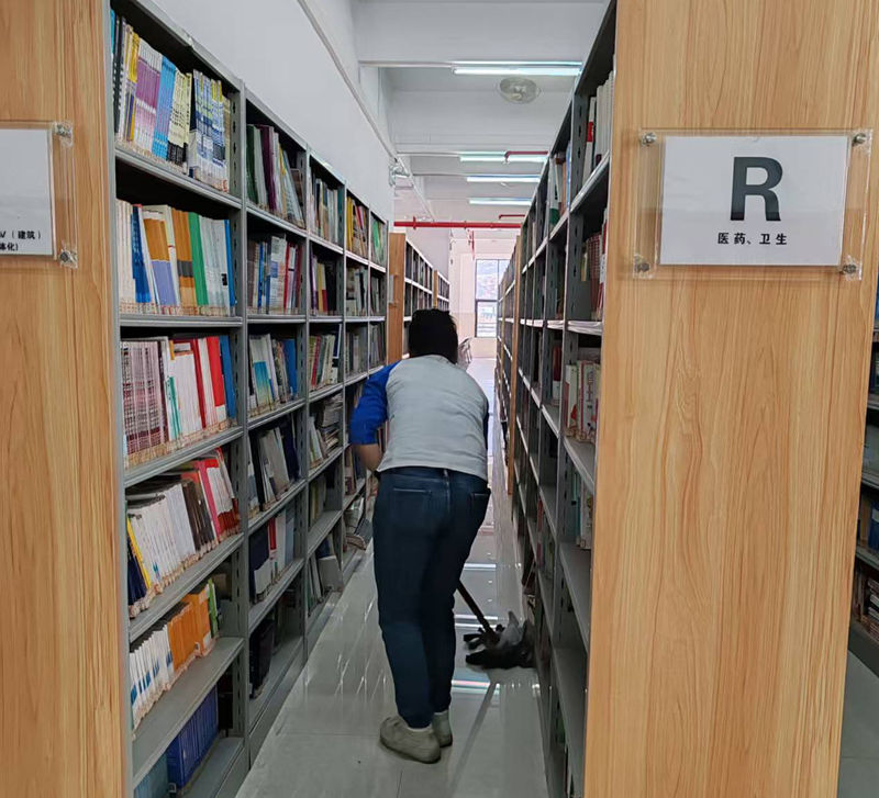 看似简单的清扫工作,却藏着老师们的细心与坚守。从桌面的一丝灰尘到书架的边角缝隙,从地面的污渍到门窗的玻璃,每一处都留下了老师们忙碌的身影。大家不怕脏、不怕累,用双手拂去尘埃,用耐心打理细节,把对学子们的关爱融入每一项清洁工作中,用无声的付出诠释着“服务育人”的初心使命,彰显着图书馆人的责任与担当。