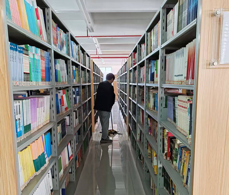清扫现场,老师们热情高涨、干劲十足,秉持着“不放过一个卫生死角、不遗漏一处细节”的原则,对图书馆各区域进行全方位清洁整理。大家分工明确、配合默契,有的弯腰清扫地面杂物、拖洗地面,不放过走廊、书架缝隙等易忽视的角落;有的踮脚擦拭门窗、书架和桌椅,将灰尘一一清除,让每一处设施都焕然一新;有的整理书架上的书籍,将散落的图书分类归位、摆放整齐,确保学子们能快速找到所需书籍;还有的对阅览区、自习区、公共通道等区域进行全面擦拭消毒,兼顾清洁与卫生安全,全力营造健康放心的学习环境。