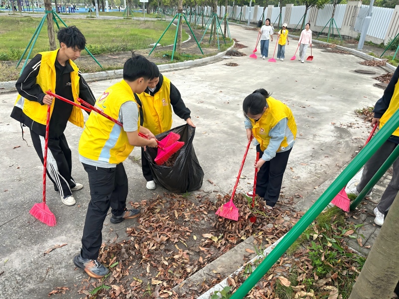 为积极响应江门市近期发布的登革热防控工作部署,切实提升校园环境卫生水平,营造整洁、文明、健康的校园环境,2025年10月24日,我校青年志愿者服务总队于南校区举行“雅洁校园,德馨共筑”校园清洁活动。