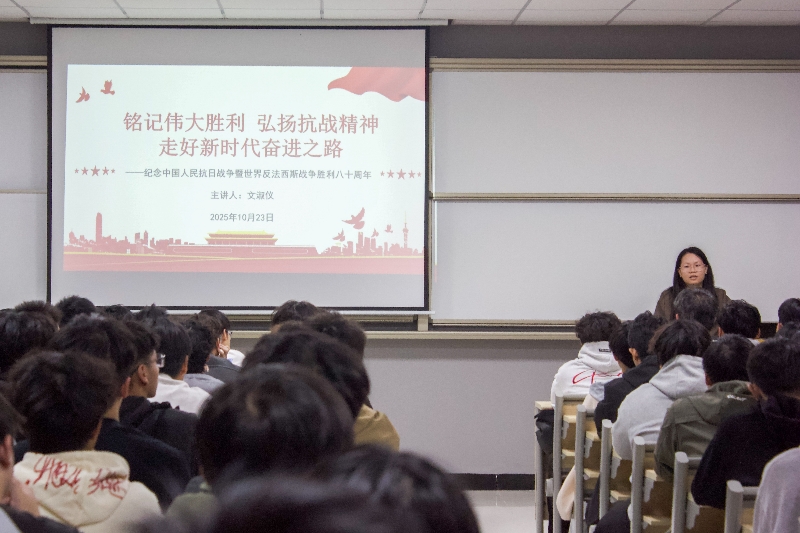 2025年10月23日,智能制造学院党总支副书记文淑仪以“铭记伟大胜利,弘扬抗战精神,走好新时代奋进之路”为主题,为2025级智能制造学院全体新生讲授了一堂深刻而富有感染力的秋季思政第一课,引导青年学子从伟大抗战精神中汲取前行力量,厚植红色基因,筑牢信仰之基。