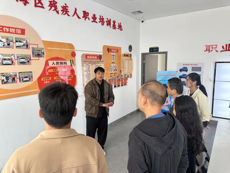 活动开始,中心负责人田子评对学院党总支的到访表示感谢,并介绍了中心的创办背景与运营模式。该中心是在江海区委区政府指导支持下,由区民政局、残联、慈善会及社会各界共同扶持创办的民生项目,也是全国第51家“喜憨儿”洗车中心。中心以帮助“喜憨儿”融入社会、自力更生为使命,通过个人成长评估、积分奖励制度及评优机制,激发员工积极性,助力他们建立职业自信与生活尊严。