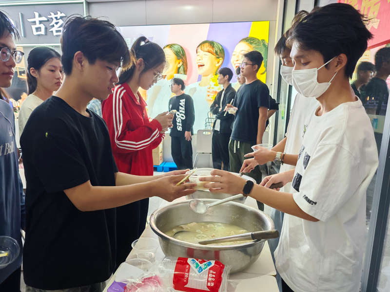 活动当天,食堂的分发点早早便排起了长队。现场的同学们秩序井然地排队,等候领取这份冬日里的甜蜜惊喜,队伍中不时回荡着阵阵欢声笑语。工作人员分工明确、热情周到,有条不紊地为大家盛好餐食,还不忘送上诚挚的冬至祝福。一碗碗热气氤氲的饺子与汤圆,瞬间驱散了冬日的凛冽寒意;一句句温暖的节日问候,悄然拉近了师生之间的距离。捧着温热的餐碗,同学们纷纷感慨,这不仅是一份香甜的汤圆,更是学院送来的深切关怀与暖心鼓励,让大家在冬至里,真切感受到了浓浓的暖意与振奋人心的力量。