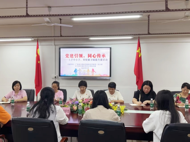 2025年5月20日下午,广东南方职业学院财经学院党总支协同师生代表前往华兴小学开展共建活动。此次校际交流以党建为引领,旨在通过搭建高校与基础教育协同发展平台,推动双方在教育资源、文化传承及实践育人领域的深度融合,助力优秀传统文化创新发展,同时搭建实践育人平台,促进双方师生共成长、同进步。