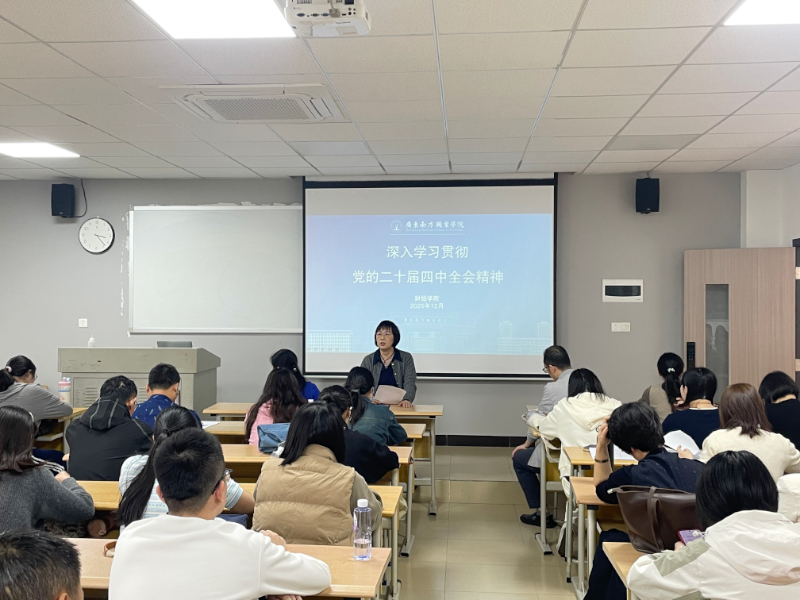 为深入学习领会党的二十届四中全会重要精神,准确把握党中央的最新决策部署,特别是关于教育强国建设的战略指引,广东南方职业学院财经学院于2025年12月5日召开专题学习会。学院院长何玉英面向全体教师,对《中国共产党第二十届中央委员会第四次全体会议公报》(以下简称“公报”)进行了系统解读,并重点结合教育相关论述,对学院下一阶段的改革发展工作提出了明确要求。