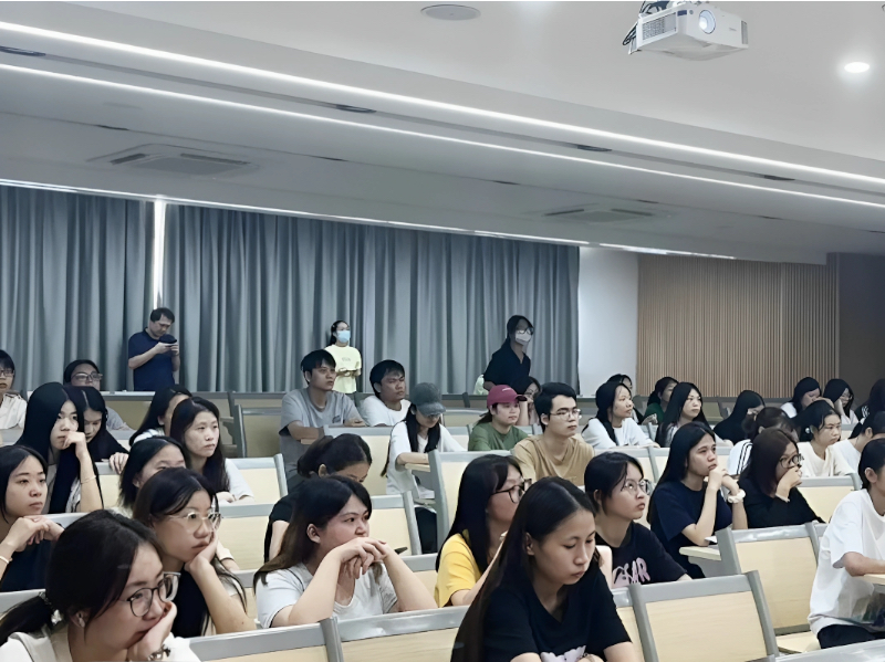 在互动答疑环节,学生围绕“跨专业应聘能否适应”“研学线路带队频率”等问题积极提问。招聘负责人回应,机构更看重应聘者的学习潜力与教育热情,针对非相关专业学生将提供培训,帮助其掌握实践教育运营逻辑等。