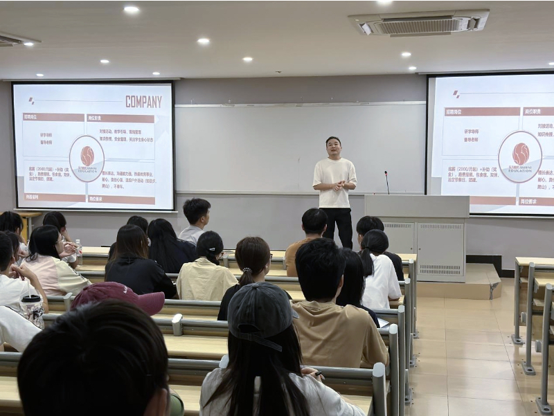 为拓宽学生就业视野,精准对接实践教育领域优质岗位,2025年10月15日,财经学院特邀东方阳光教育机构在校本部14221教室举办“研学导师专场招聘宣讲会”。本次宣讲会面向应届毕业生重点招募研学导师、督导老师岗位,为有志于实践教育领域的学子搭建职业发展平台,吸引近百名学生到场参与。