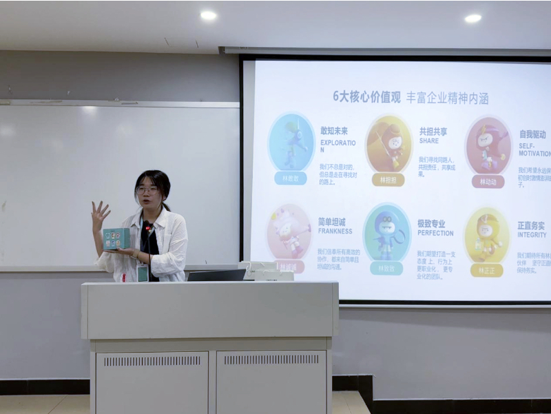 宣讲会上,林氏家居负责人通过讲述创始人林佐义“从万元起步到年销超2亿”的创业历程及“骑着三轮车周转于家具厂与物流之间”的早期故事,传递了品牌“敢知未来、正直务实”的精神内核。现场展示的数据更是极具说服力:2007年创立即登顶电商Top1,多次蝉联天猫家具类十一卫冕之王,2023年线下门店突破1500家,全网粉丝4000万+,会员数580万+,直观呈现了其“多平台、新零售、多品牌”的发展格局,让现场学子深刻感受到了品牌的惊人成长速度与行业影响力。
