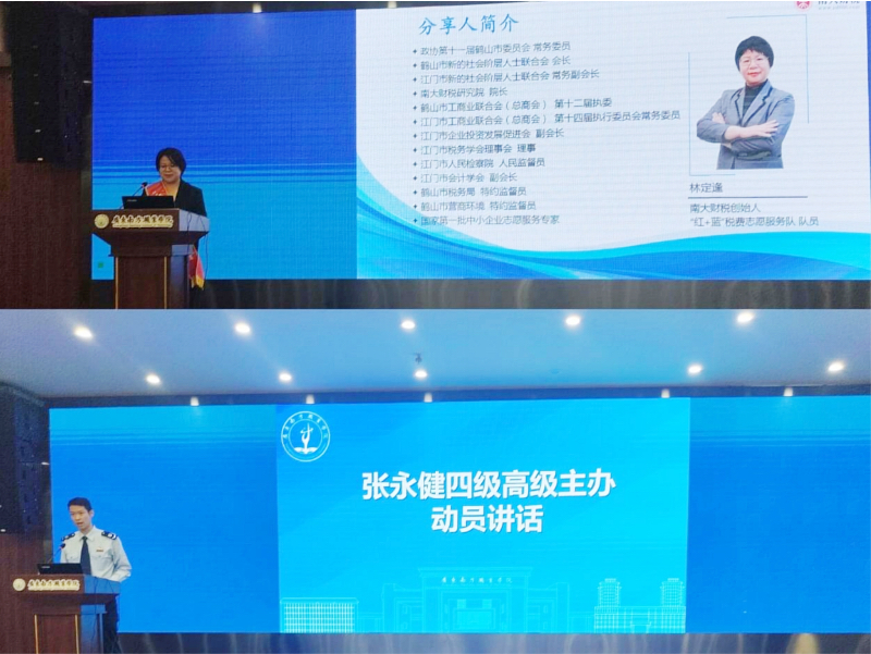 活动伊始,财经学院副院长汪国利代表学校致辞,对莅临现场的江门市税务局纳税服务中心的各位税务专业人员及全体同学致以诚挚欢迎。汪院长表示,毕业、就业与创业是同学们人生的关键转折点,而税费政策与个人未来发展紧密相连。他强调,本次活动是学校精心搭建的学习平台,旨在帮助同学们深入了解相关政策,为未来的职业发展与创业之路奠定坚实基础。