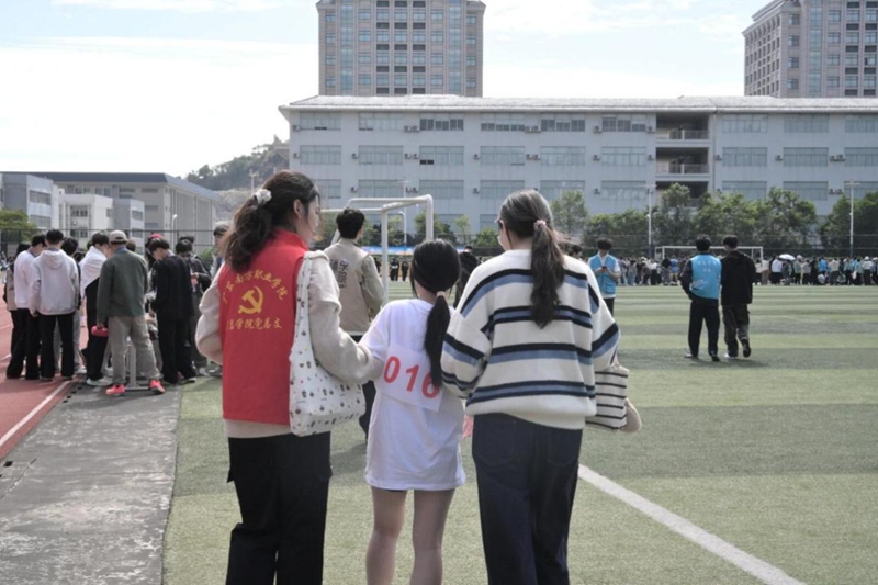 为弘扬体育精神,彰显新时代青年学子的蓬勃风貌,广东南方职业学院于2025年11月21日隆重举行校运会。赛场上运动健儿奋勇争先,赛场边一抹抹“志愿红”同样耀眼夺目。信息学院第二党支部的志愿者们以党建为引领,开展“一对一”结对志愿服务,用精准高效的帮扶为赛事顺利推进注入温暖力量,成为校运会上一道动人的风景线。