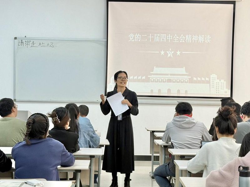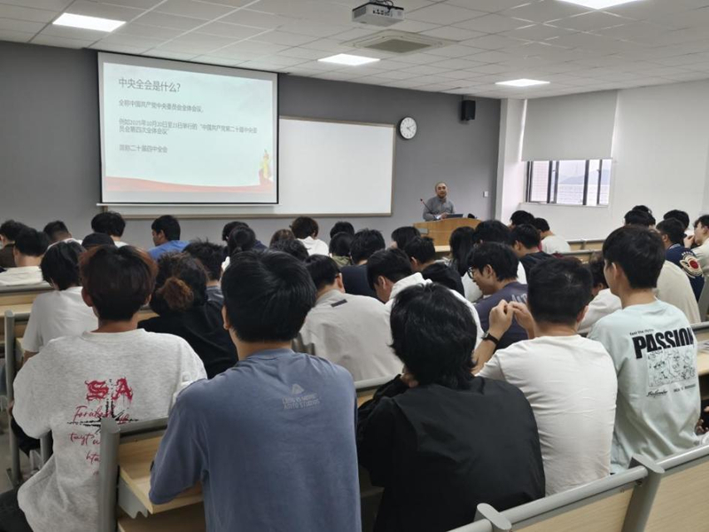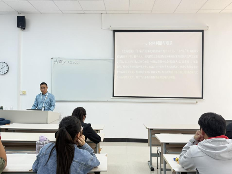 学院各班级主题班会中,以“锚定中国式现代化发展新目标”为主线,重点解读《中共中央关于制定国民经济和社会发展第十五个五年规划的建议》,从高质量发展、美丽中国等目标,到党的全面领导、人民至上等原则,再到科技自立自强等十二项重点任务,以图文结合方式细致讲解。同学们结合专业与生活踊跃发言,纷纷表示将把全会精神转化为学习动力,将个人成长与国家发展紧密结合。