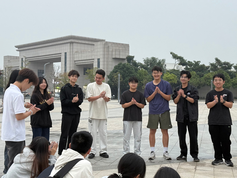 在经典的“丢手绢”游戏环节,大家围坐成圈,手绢随着轻快的节奏在人群中传递,被选中的同学从容展示才艺,歌声、笑声与掌声在操场上交织回荡,有效拉近了成员间的距离,打破了初识的生疏感。随后进行的“猫抓老鼠”游戏进一步点燃了现场氛围,扮演“老鼠”的同学灵活躲闪,扮演“猫咪”的同学协同追击,大家在奔跑与配合中充分展现了青春活力,也培养了团队协作意识。
