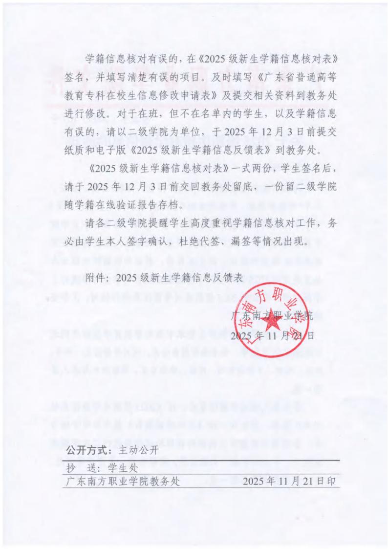 校教字〔2025〕107号 关于2025级新生核对学籍信息的通知