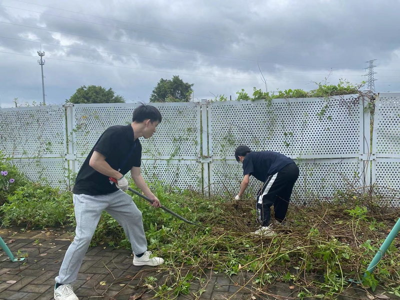 与此同时,学生公寓、书院外围的劳动场面同样热火朝天。师生志愿者们手持垃圾袋、铁钳、扫帚等工具,对散落在草坪、树丛中的塑料袋、纸屑、烟头等垃圾进行了“地毯式”清理。大家不放过任何一个卫生死角,尤其对容易积存雨水的瓶罐、坑洼进行了清掏和填平,有效消除了蚊虫的孳生环境。经过一个多小时的奋战,书院周边环境变得整洁有序,面貌焕然一新。