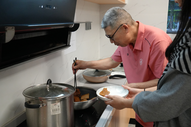 3月30日傍晚,钟兆明副校长走进明德书院共享厨房,与同学们一同制作客家美食,在烟火气息中共享温馨午后。